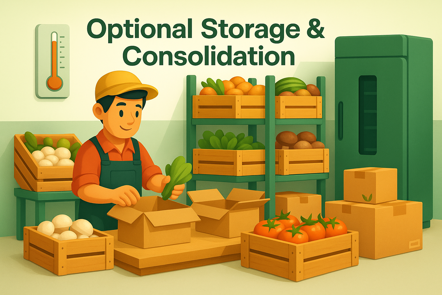 For large or multi-supplier bulk orders, FarmyHub ensures all products are handled properly before final delivery. When several farmers are involved — or when the total volume cannot be delivered in one go — we manage the necessary consolidation steps to keep everything fresh and organized.